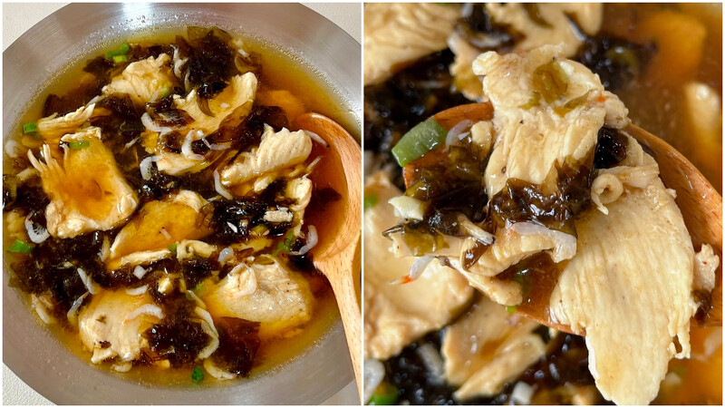 鸡胸肉紫菜汤真的可以减肥瘦身吗?答案是可以的,因为这道汤整体来说低热量、高蛋白、又低碳水,很适合正在减脂期的族群。 鸡胸肉:高蛋白质,帮助增肌、提升饱足感,热量低,且脂肪含量少。 紫菜:富含膳食纤维,能帮助肠道健康,且热量极低。 清汤:不像浓汤或炖汤含有大量脂肪,不会造成额外热量负担。 超美味食谱:食材清单:鸡胸肉 100g、紫菜 适量、姜片 2片(去腥)、蒜末 1瓣(增香)、葱花 适量、低钠酱油 1小匙、胡椒粉 少许、盐 适量 烹饪步骤:01. 鸡胸肉处理(让鸡肉嫩口,详见下方Tips)02. 锅中加水,放入姜片,水煮滚后放入鸡胸肉,转小火煮 8-10 分钟,关火焖 5 分钟,取出切成鸡肉片。03. 另起锅,加入少许油爆香蒜末,然后倒入适量清水。04. 水滚后放入紫菜、鸡丝,调味(盐、胡椒粉、低钠酱油)。05. 最后撒上葱花即可享用! Photo/小红书 Tips:鸡胸肉怎么处理才嫩口?鸡胸肉容易乾容易柴,要煮出嫩口的关键是+: 01. 浸泡盐水:在 500ml 水里加入 1 小匙盐,浸泡鸡胸肉 30 分钟,可保持水分。02. 加少许小苏打:腌製时加 1/4 小匙小苏打粉,可让肉质更软嫩。03. 低温煮法:用 80-85°C(微滚但不沸腾)的水煮 8-10 分钟,煮完焖 5 分钟,口感更嫩。04. 顺纹理切片:煮熟后顺着肌肉纹理切片,比直接切成鸡肉块更软嫩。延伸阅读: 晨起空腹练30分钟对身体的好处有哪些?指压板要如何挑选才真正有效?都帮妳整理好了长年保持42公斤!《苦尽柑来遇见你》IU李知恩 公开从M→XXS进化仙女减肥秘诀!咳得不要不要的?Threads热搜绿茶+红茶真有这么神?来听听中医师怎么说!免责声明:肌肤保养品使用后状况会依个人使用方法及肌肤状况而有所不同,并请配合正确使用方法。 举报